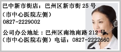 平昌店:平昌縣伯堅廣場一臺街 0827-6819118 公司辦公地址:巴州區(qū)南池南路212號(市中心醫(yī)院右側(cè)) 電話:0827-2222660